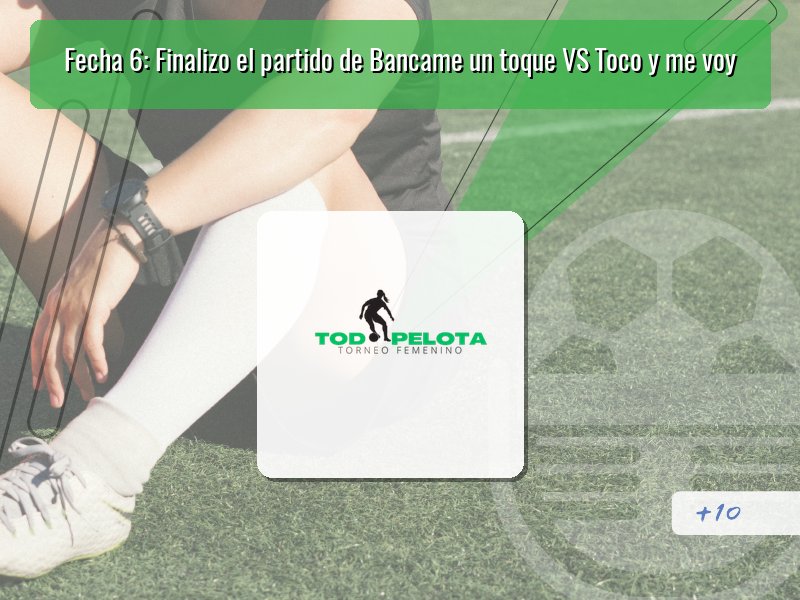 En el complemento, Toco y me voy descontó con un gol de penal pero no le alcanzó. Bancame un toque sentenció el pleito con el 3-1 definitivo en una brillante jugada colectiva que definió su mediocampista.