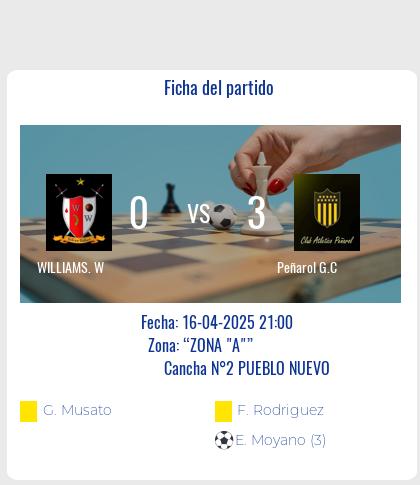 El partido finalizó con un contundente 0-3 a favor de Peñarol G.C. sobre WILLIAMS. W.