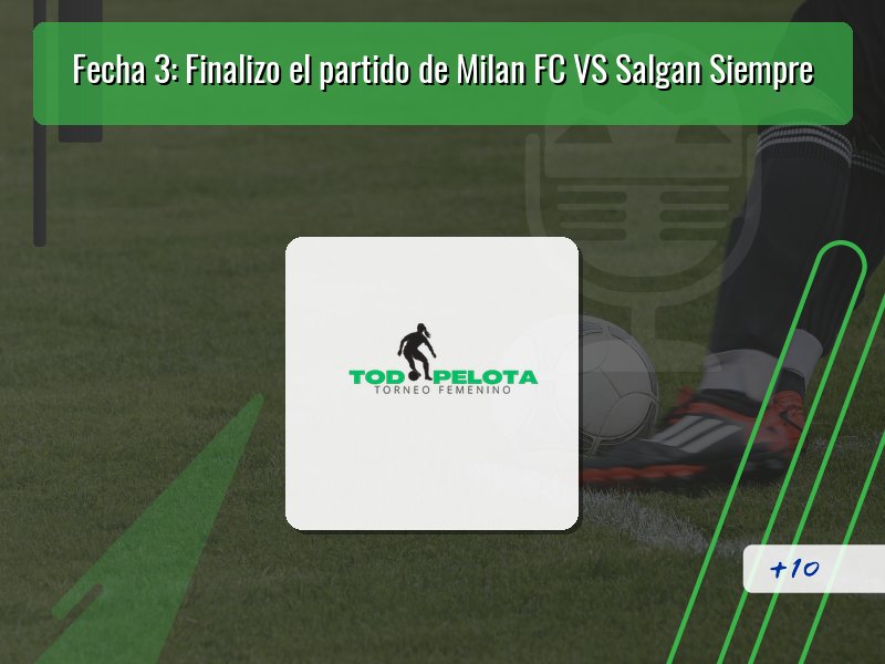 Milan FC descontó con un penal a los 60 minutos, pero la reacción fue efímera. Salgan Siempre volvió a estirar la ventaja con un gol de tiro libre a los 75 minutos. Y sobre el final, ya con Milan FC entregado, convirtió dos goles más para el contundente 6-2 final.